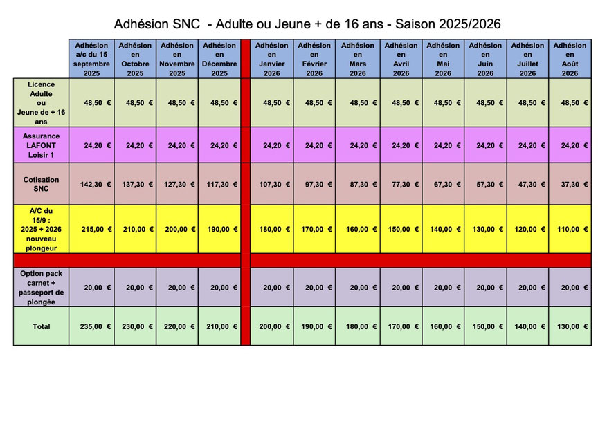 - Pour une adhésion en décembre 2025, le montant de l'adhésion est de 190€. Il concerne l'année 2025 et l'année 2026.